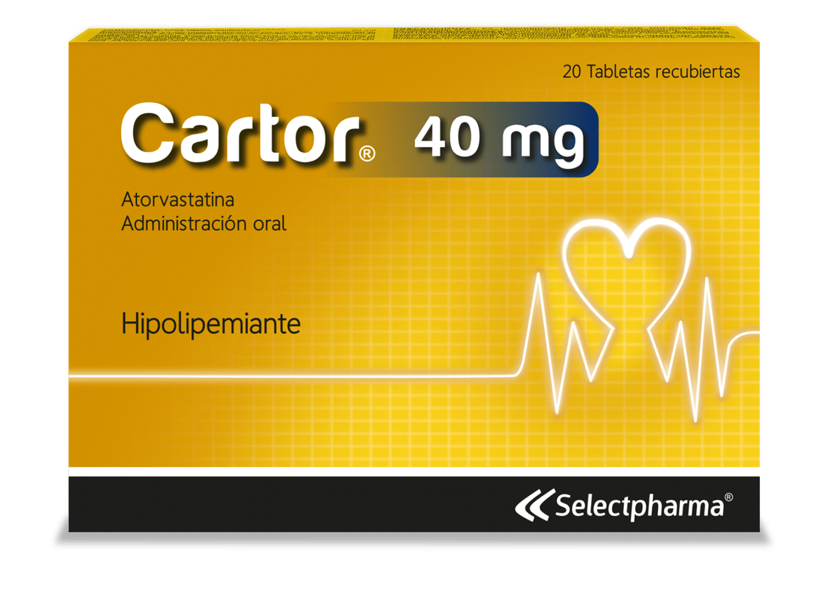 Cartor® de Selectpharma contiene atorvastatina, un medicamento indicado para el control del colesterol y triglicéridos en sangre. Está diseñado para usarse junto con una dieta balanceada en adultos, adolescentes y niños mayores de 10 años.