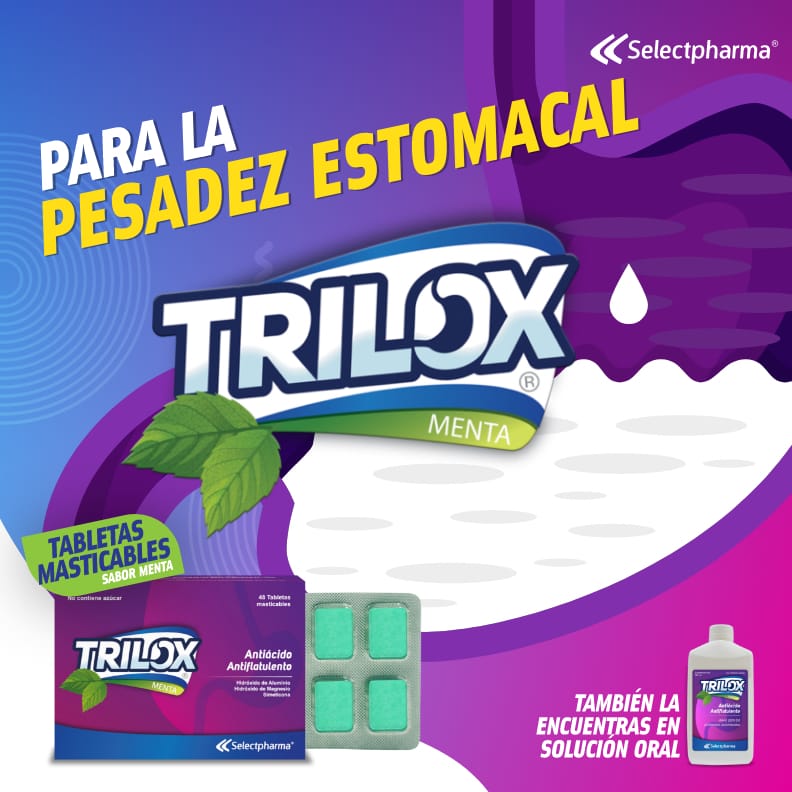Trilox es un medicamento utilizado en el tratamiento de la hiperacidez ocasionada por la ingesta de comidas y bebidas en exceso. Es un apoyo para el tratamiento de reflujo, gastritis